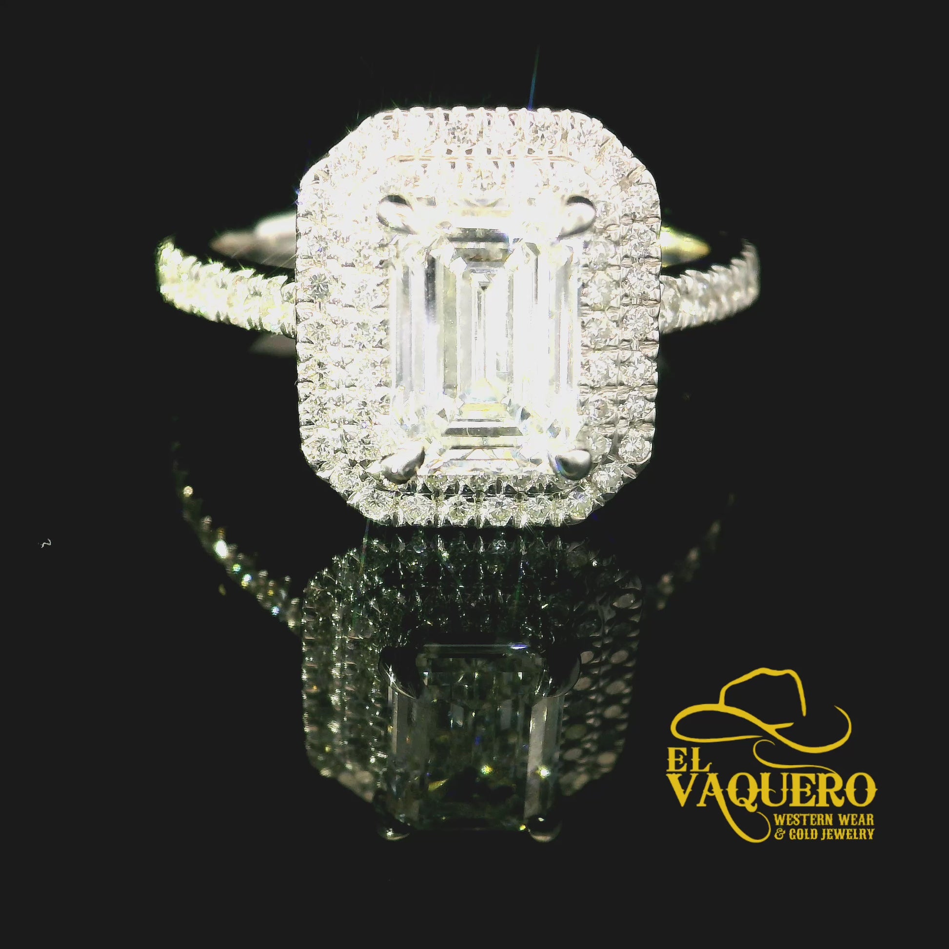 14K Gold Emerald-Cut Halo CVD Engagement Ring